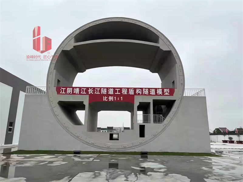 管片模型位于江陰隧道智慧展廳西側(cè),基本外部約尺寸20米長8米寬,高度15.8米,外觀仿真。...